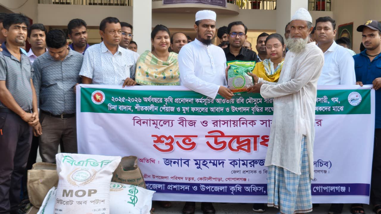 কোটালীপাড়ায় প্রান্তিক কৃষকদের মাঝে সার-বীজ বিতরণ