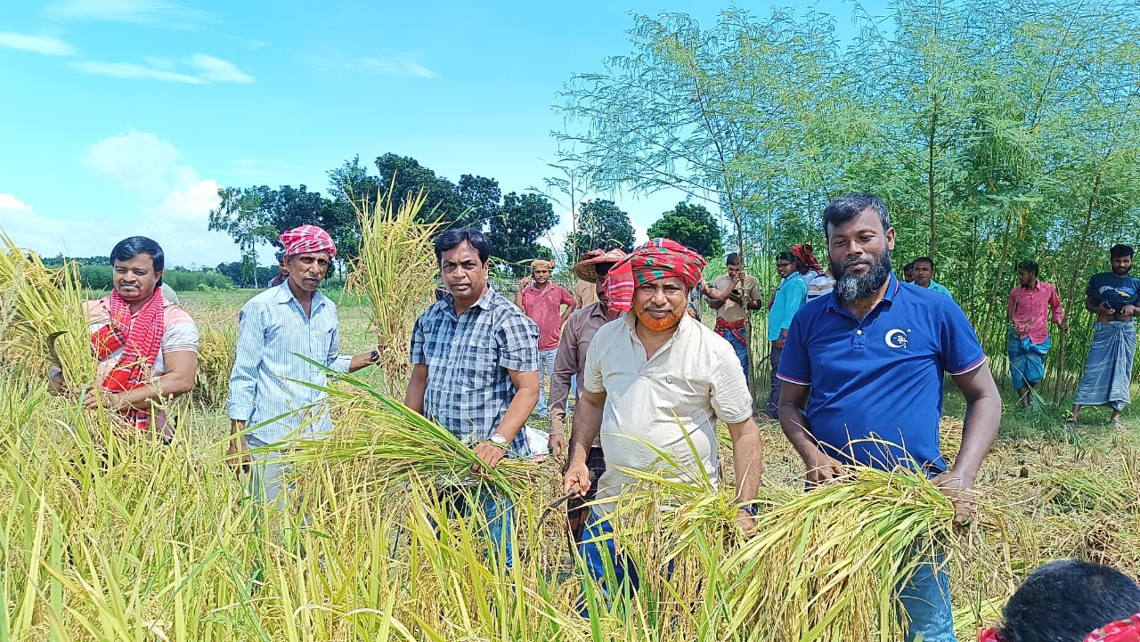 গোয়ালন্দে কৃষকের ধান কেটে দিলেন কৃষক দলের নেতারা