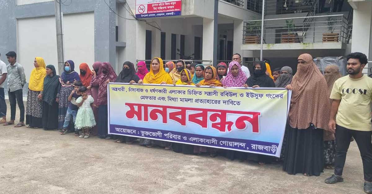 গোয়ালন্দে সন্ত্রাসীদের গ্রেফতার ও মিথ্যা মামলা প্রত্যাহারের দাবিতে মানববন্ধন