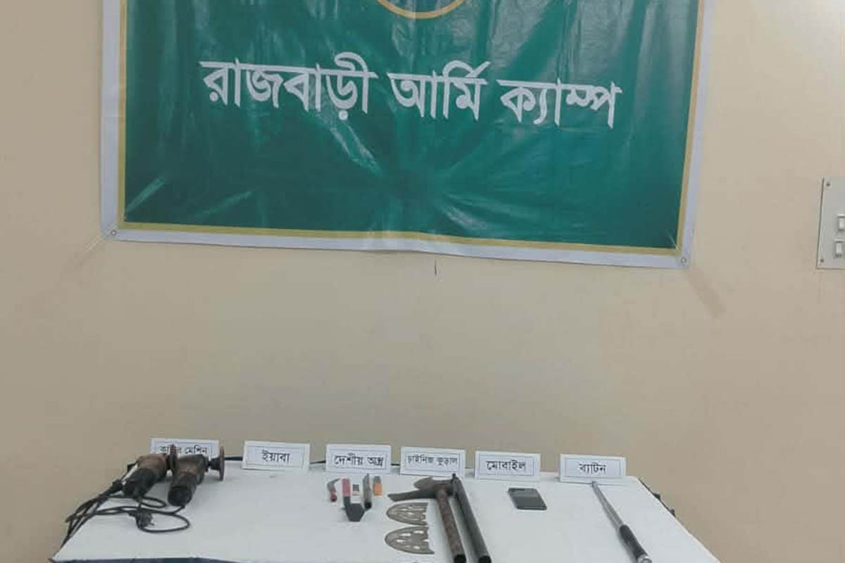 রাজবাড়ীতে যৌথ বাহিনীর অভিযানে দেশীয় অস্ত্র ও মাদক উদ্ধার