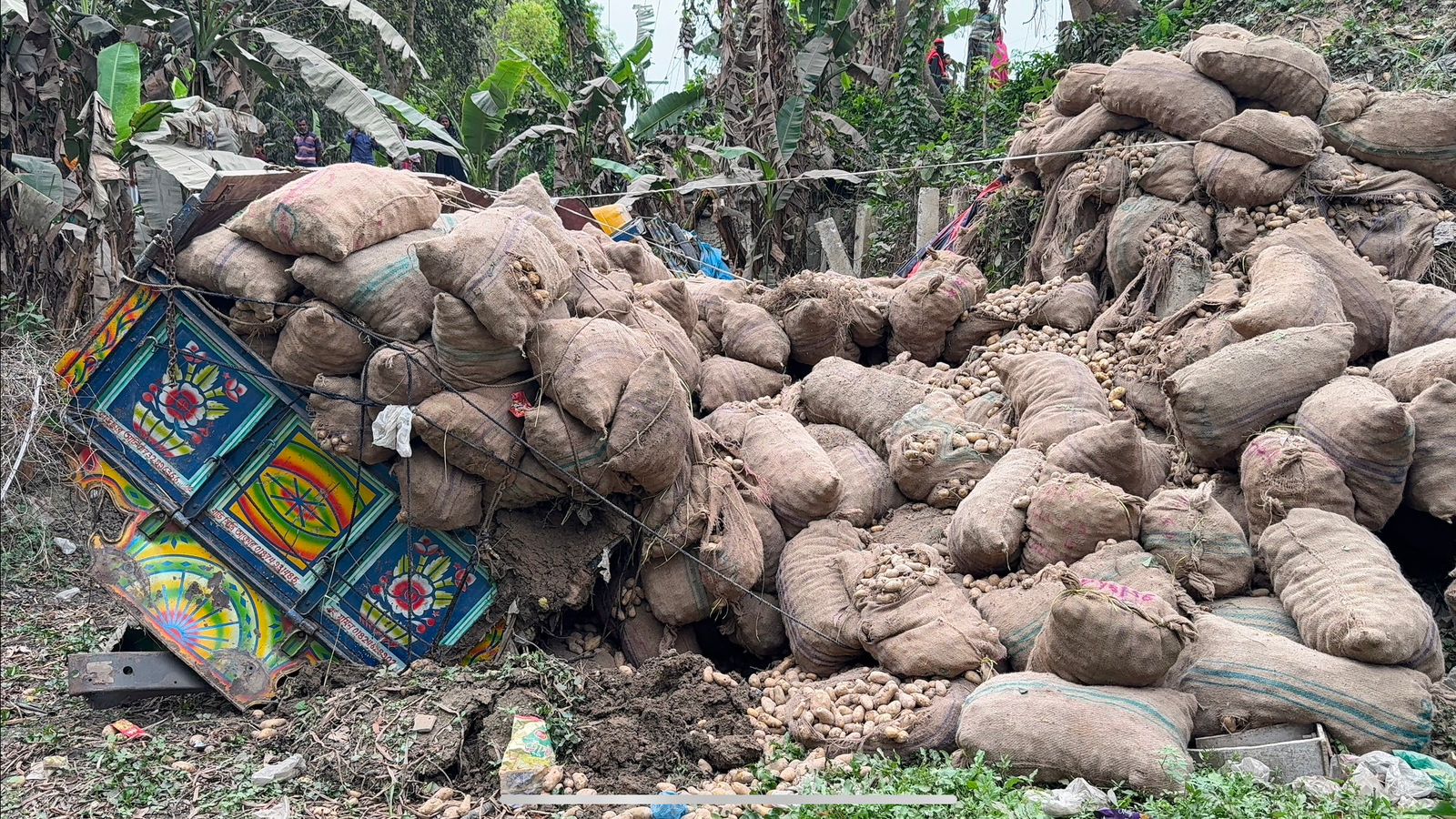 রাজবাড়ীতে ট্রাক উল্টে চালকের সহকারী নিহত